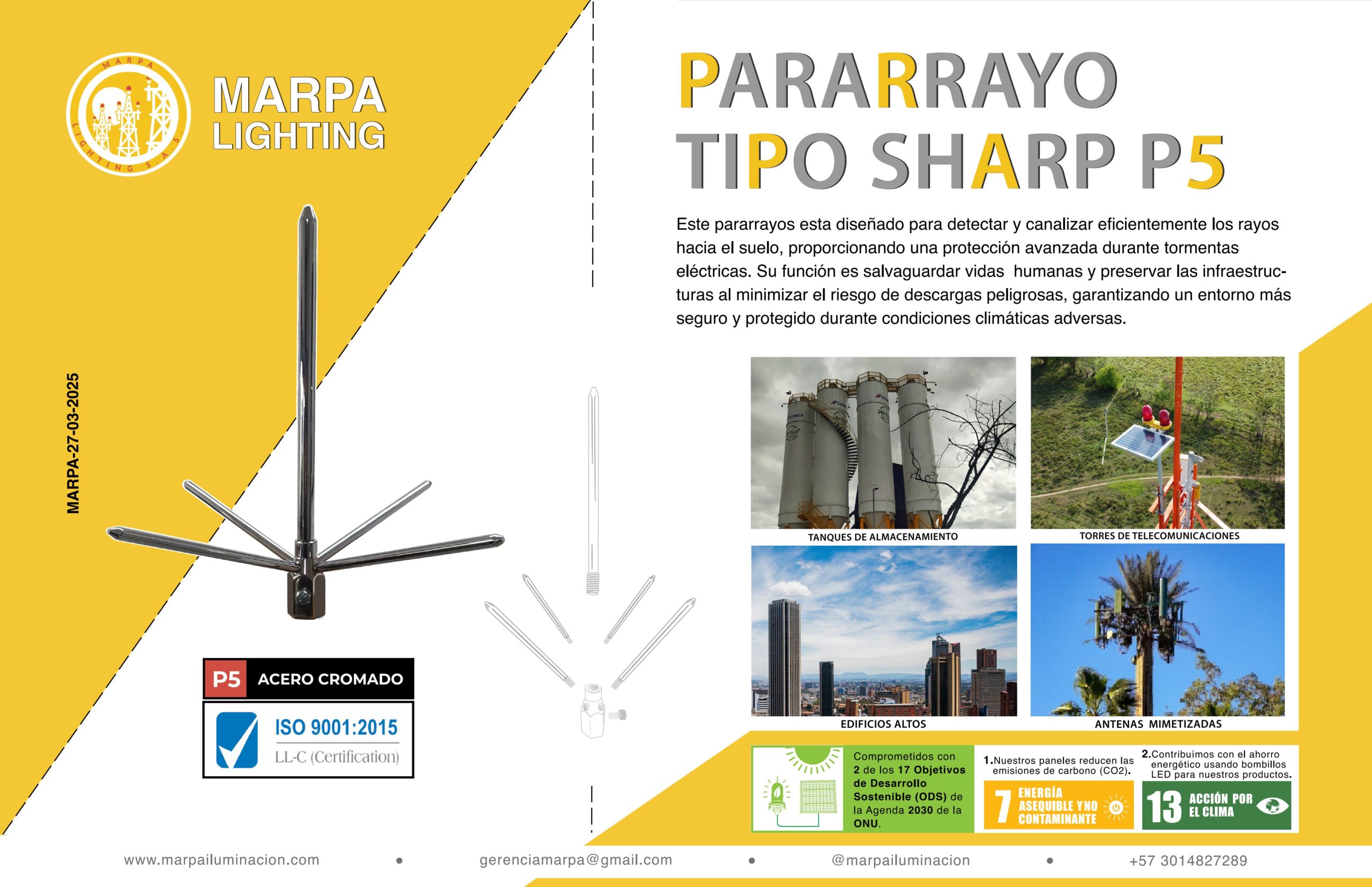 Observa nuestro pararrayo P5. Protección superior, seguridad, durabilidad y listo para cualquier entorno.