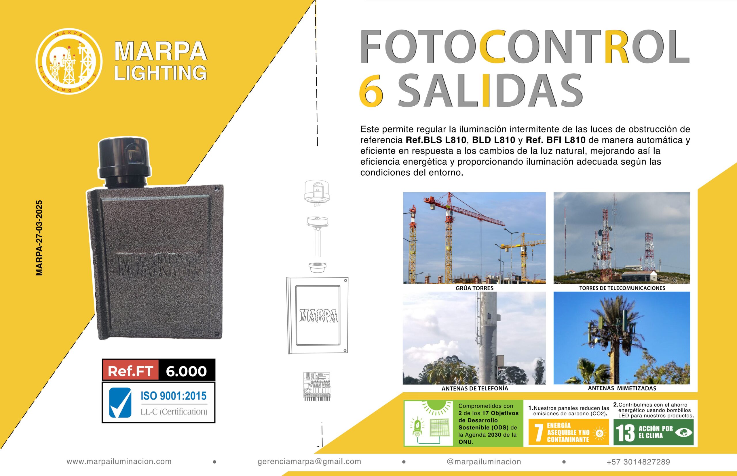 El fotocontrol FT 1.000 también conocido como célula fotoeléctrica o sensor de luz, es un dispositivo que se utiliza para controlar automáticamente la iluminación de las balizas de obstrucción de manera automática en función de la cantidad de luz ambiente. Funciona detectando cambios en la intensidad lumínica y activando o desactivando las luces conectadas a él según sea necesario.